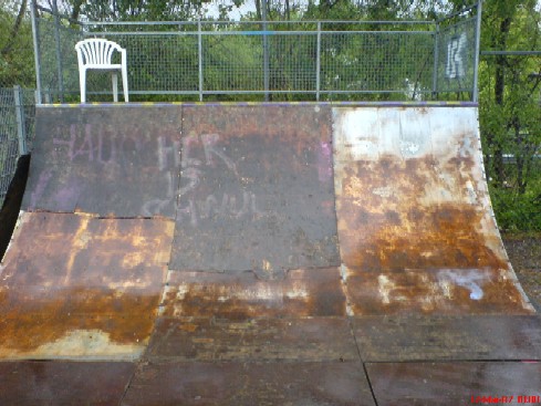 Gelegen am Sportplatz,nähe Bahnhof. Die Miniramp braucht dringend 'nenneuen Belag!