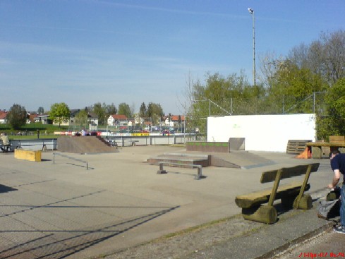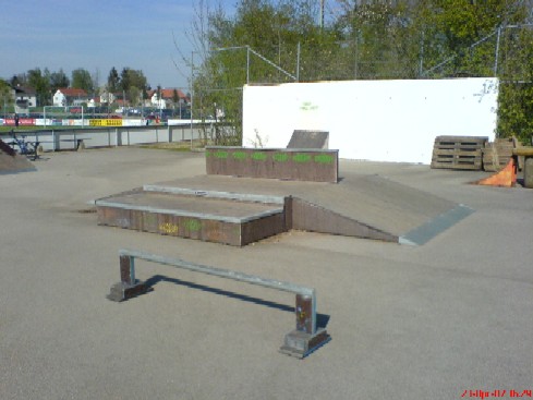 Von Erding kommend gelegen rechts am Sportplatz, hinter den Fusballplatzbanden versteckt; Sehr kleiner Platz der dank vieler Rails und einem "IOYOU-Ramps-Multifunktionsobstacle" dennoch seine Reize hat.