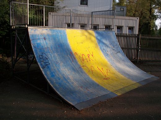 der wieder zur Strasse wird ist gleich links der Skatepark